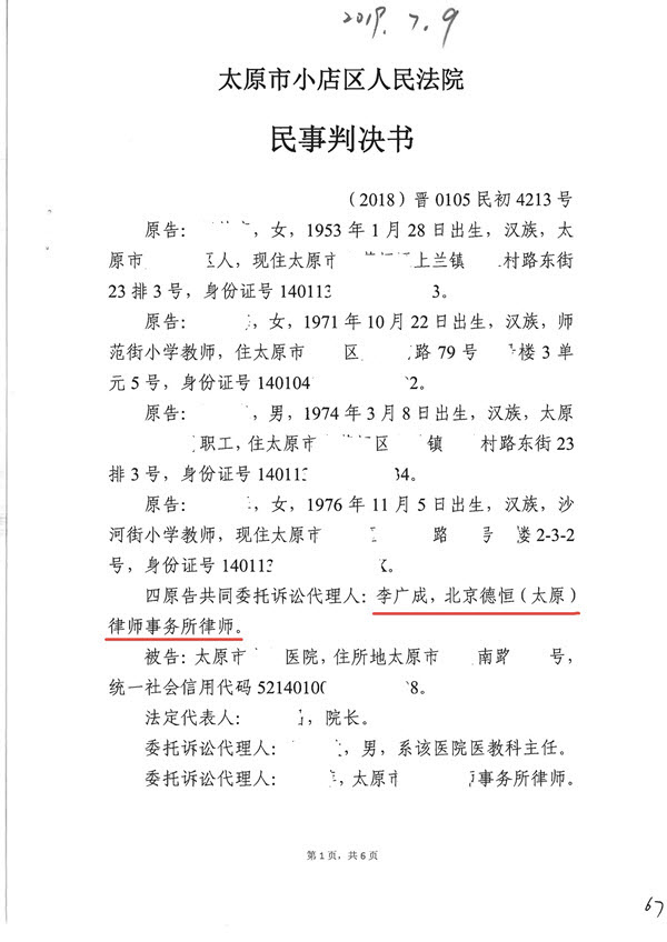太原李广成律师成功代理一起医疗损害责任纠纷案件,取得良好的代