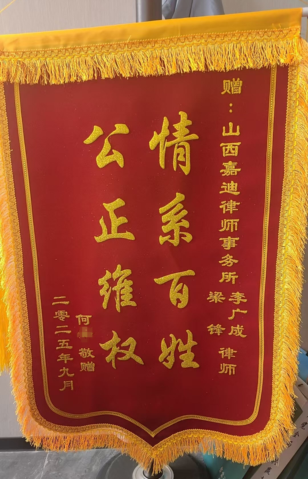 李广成律师成功代理疑难复杂诉讼案件胜诉,委托人赠送锦旗感谢
