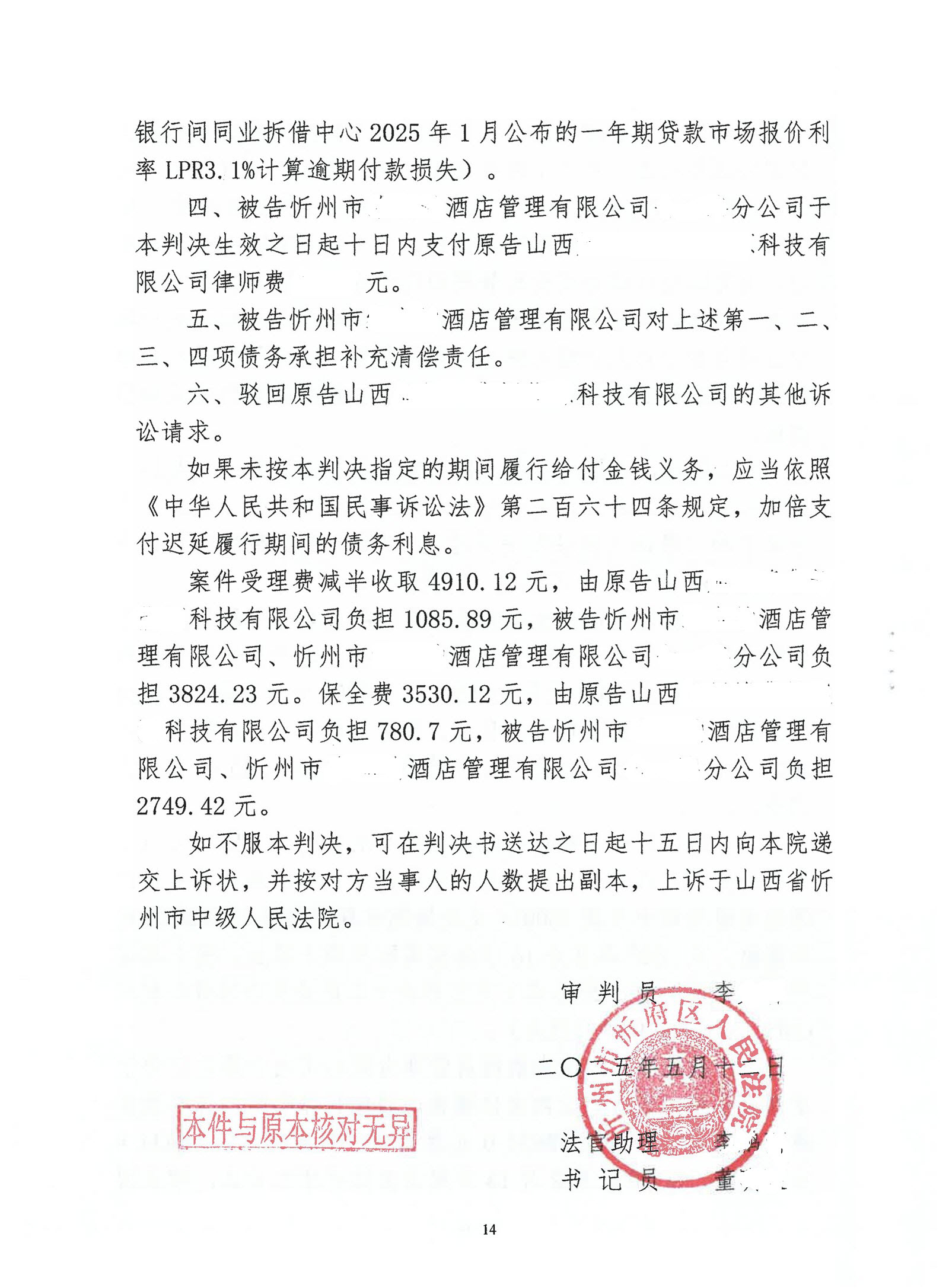 李广成律师接受本案原告山西XXXX科技有限公司(以下简称原告)的委托,担任其与被告忻州市XXX酒店管理有限公司(以下简称被告)合同纠纷案的诉讼代理人,李广成律师现根据本案事实并结合我国现行相关法律法规,发表以下代理意见: